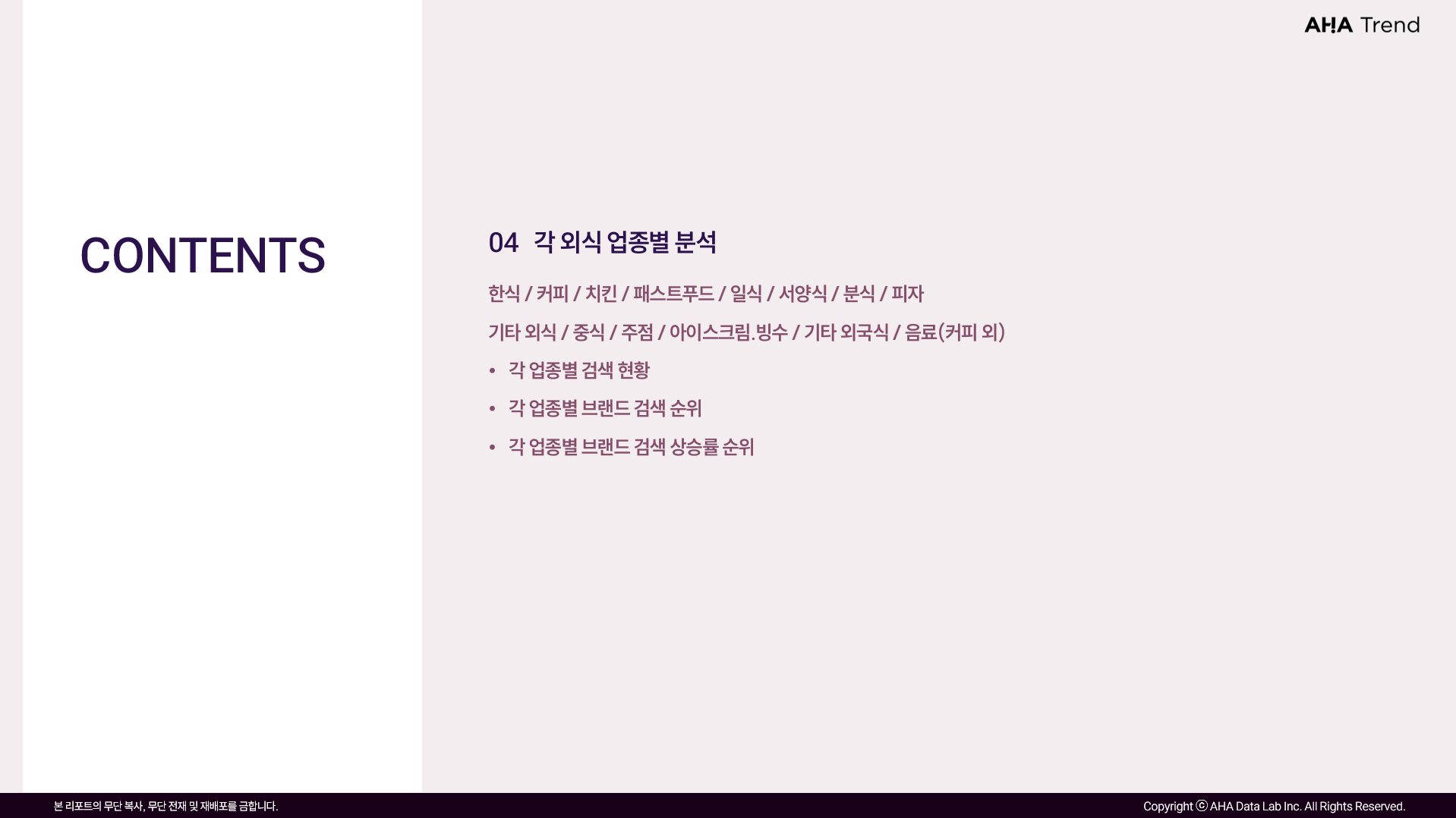 아하트렌드는 14,600개 외식 브랜드의 명칭 및 연관 키워드,