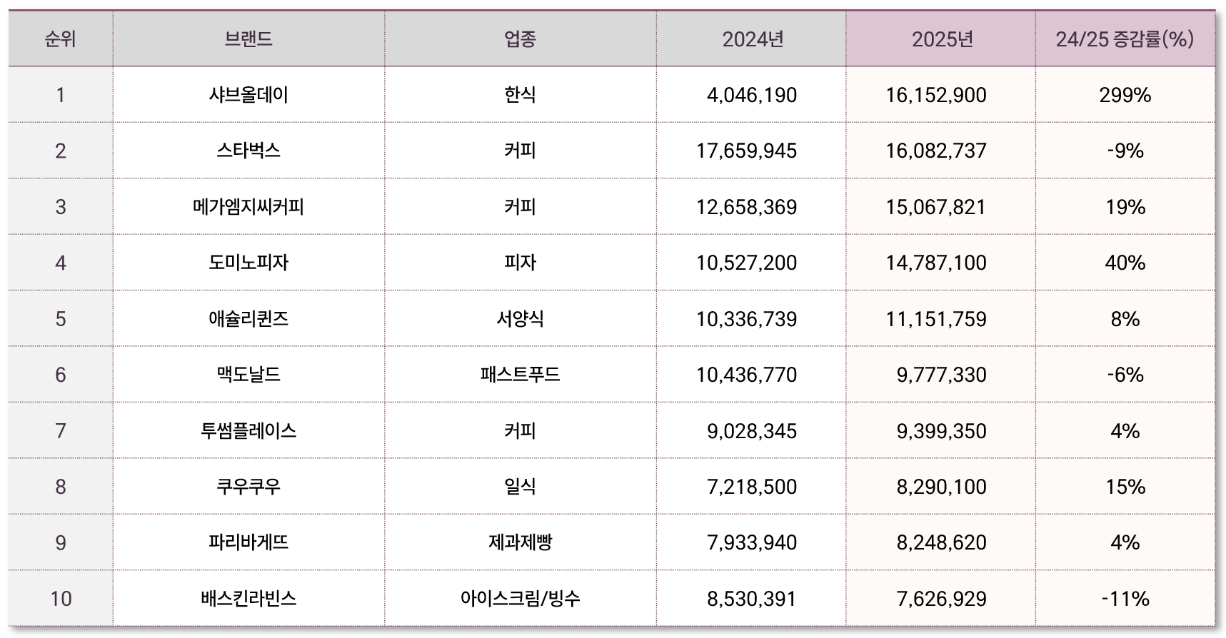 [ 2025 외식 브랜드 검색 순위 TOP 10 ]