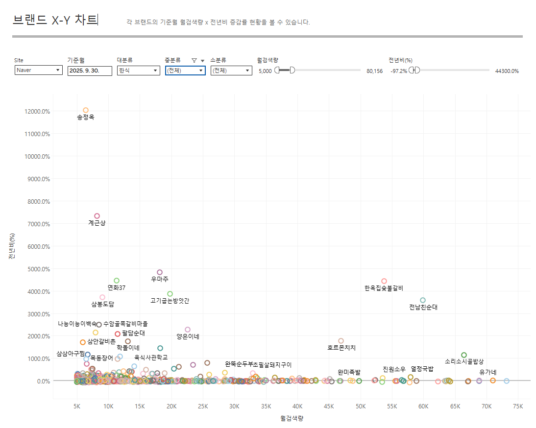 외식 브랜드의 검색 데이터를 조사하여 여러 통계와 분석 결과를 발표하고 있습니다.