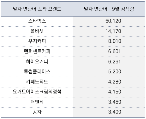 9월에도 7,000개 이상의 외식 브랜드에서 포착된 2만 개 이상의 연관 키워드를 완전 분석하였습니다.
