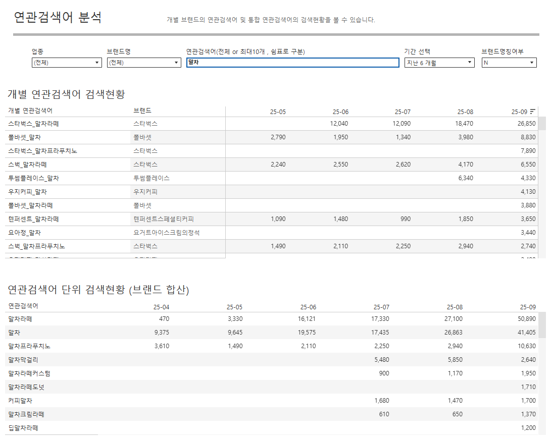 아하트렌드에서는 매월 조사하는 모든 외식 브랜드의 모든 연관 키워드를 수집하여 검색 데이터를 조사하고 있습니다.