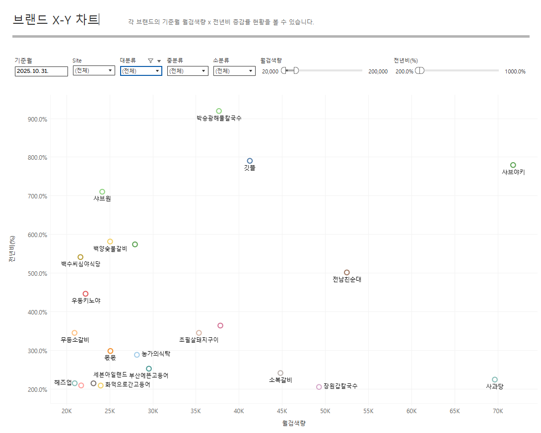 외식 브랜드의 검색 데이터를 조사하여 여러 통계와 분석 결과를 발표하고 있습니다.