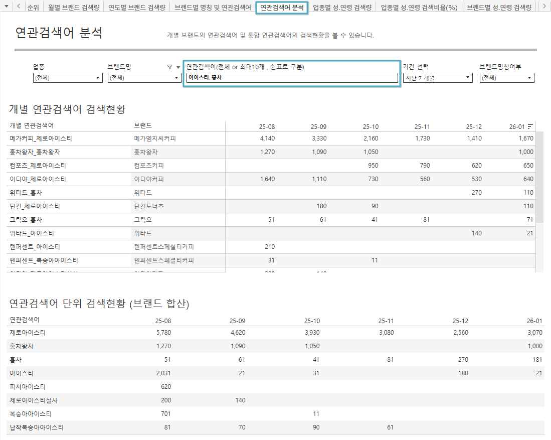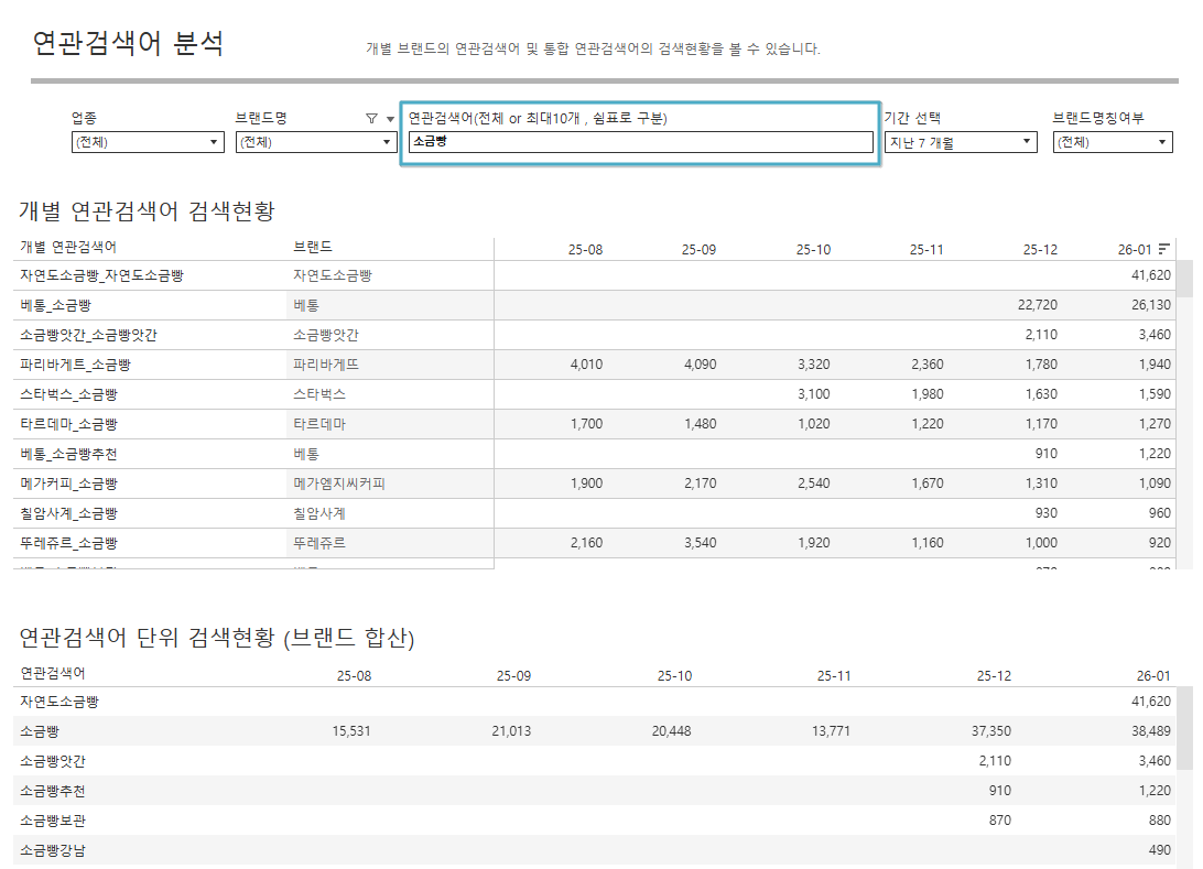 외식 브랜드 검색 분석 서비스 대시보드 가운데 연관검색어 분석을 보시면, 어느 정도 힌트를 얻으실 수 있습니다.